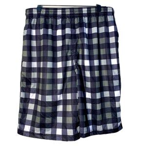 Burnside Shorts Black Gray Plaid Men’s Large Elastic Pull String Fully Lined