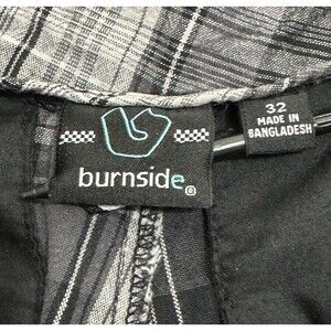 Burnside Shorts Mens 32 Fits 29 Gray Black Plaid Chino Slash Pockets Lightweight
