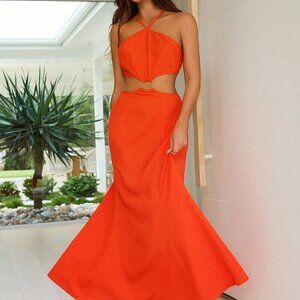 Burnt Orange Boho Women's Backless Hollow-Out Solid Color Sleeveless Dress