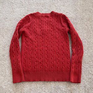 Burnt Orange Chaps Classics Fitted Cable Knit 100% Cotton V-neck Sweater