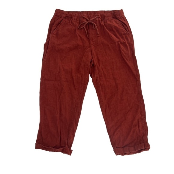 Burnt Orange Cuffed Hem Linen Capri Pants Size Small Women’s