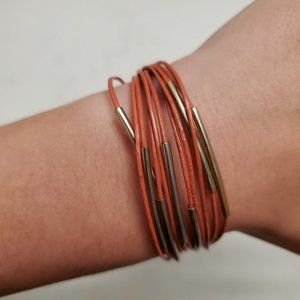 Burnt Orange Faux Leather Strappy Bracelet Gold Preppy Boho Neutral Work Office