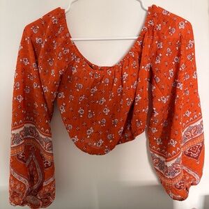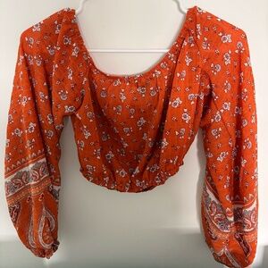 Burnt Orange Floral Off-the-Shoulder Long Sleeve Small Boho Blouse