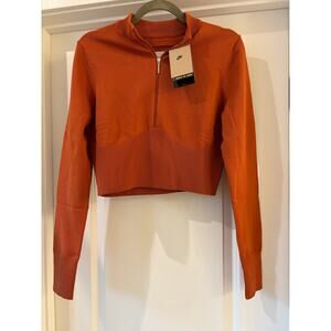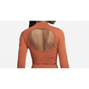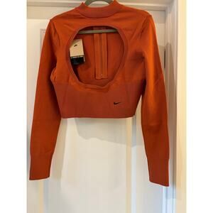 Burnt Orange Nike Chill Knit Women's Slim Long-Sleeve Cropped Top Size L NWT