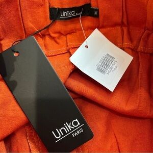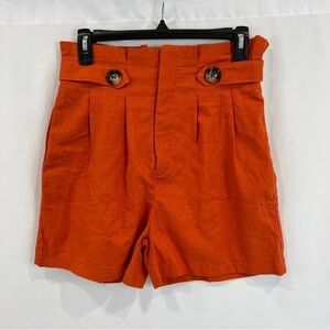 Burnt Orange Paper Bag High Waisted Cotton Linen Blend Shorts
