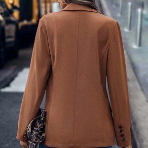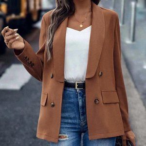 Burnt Orange Preppy Womens Shawl Collar Double Breasted Blazer