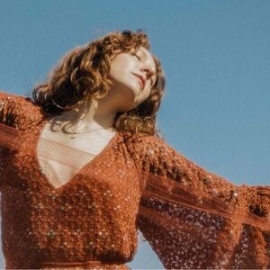 Wore once for a photo shoot! Absolutely stunning dress. Bell sleeves with fringe. Sequins are beautiful. Comes with tie belt, perfect condition.