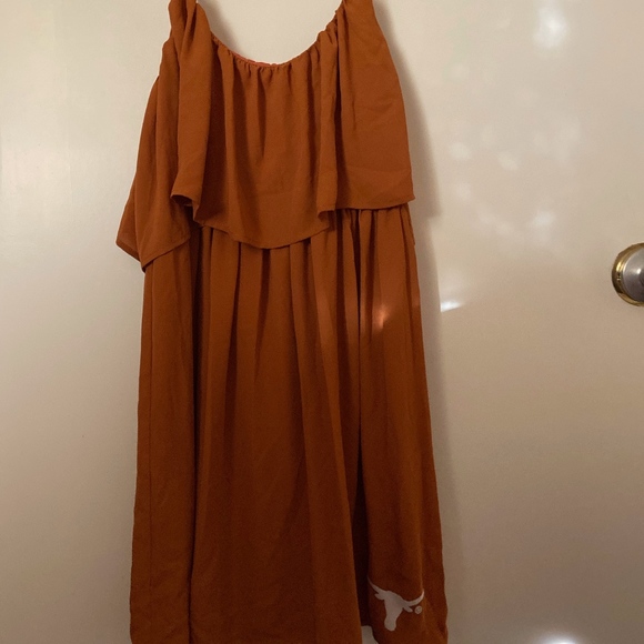 Burnt Orange Spaghetti Strap Game Day Dress. Longhorn graphic bottom left corner. Never worn.