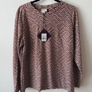 Burnt orange and white striped long sleeve top, textured wavy stripes
