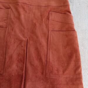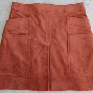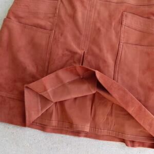 Burnt orange BCBG suede mini skirt with pockets and zipper closure