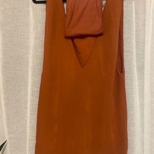 Form fitting on thighs/butt, Drapey on top with low V in back. Bandeau provided to go with.