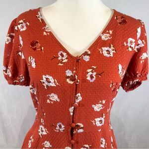Burnt orange rust button down textured floral dress with pockets size XS