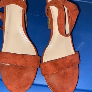 Worn twice. Small black mark on the inside of one shoe. Good condition. Open toe. Size 8.5