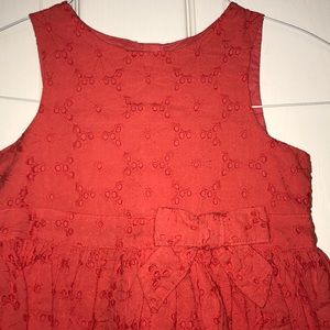 Genuine Kids by OshKosh, burnt sienna eyelet dress with bow in front. Cotton underlining. Buttons up in the back. Super soft. Excellent condition!