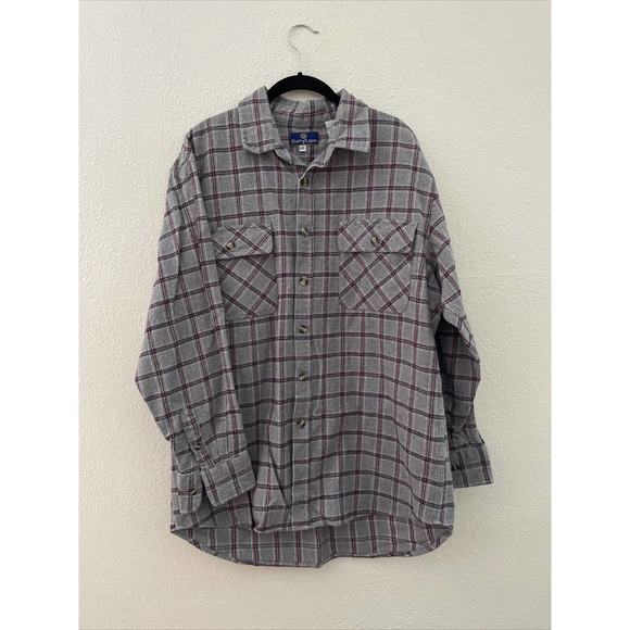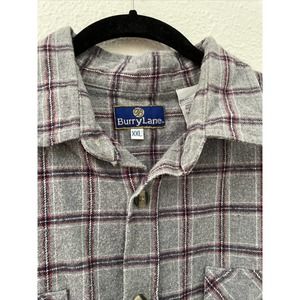 Burry Lane Button Down Flannel Shirt Mens Size XXL Red Grey Blue Plaid Heavy.