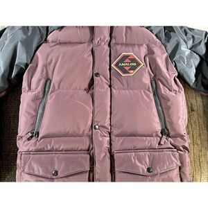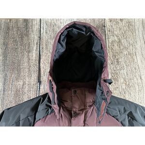 Burton Analog AG Innsbruck Down Snowboard Maroon Jacket. Size small. In great condition! Very light signs of any wear. Looks barely used! Has a hood with drawstrings. Full zip front with zip up pockets, a pocket by the main zipper and button pocket below. Beautiful interior pattern. Vented pits. Down material.