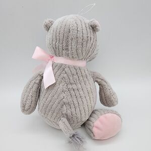 Burton + Burton Corduroy Ribbed Hippo Plush 12” Gray Pink Bow Stuffed Animal Toy
