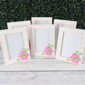 Burton & Burton Pink Button Flower Picture Frames Set of 6