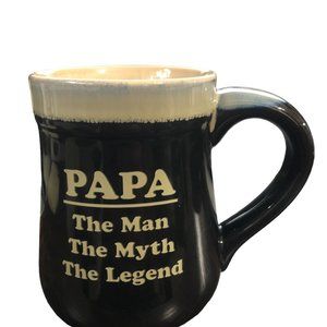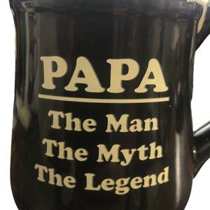 With the words "PAPA the Man the Myth the Legend" printed on it, it's sure to bring a smile to his face every time he uses it. Made of durable stoneware, it's perfect for holding both hot and cold beverages and comes in a sleek black color. This mug is not only functional but also a collectible item that will look great in any kitchen or home.