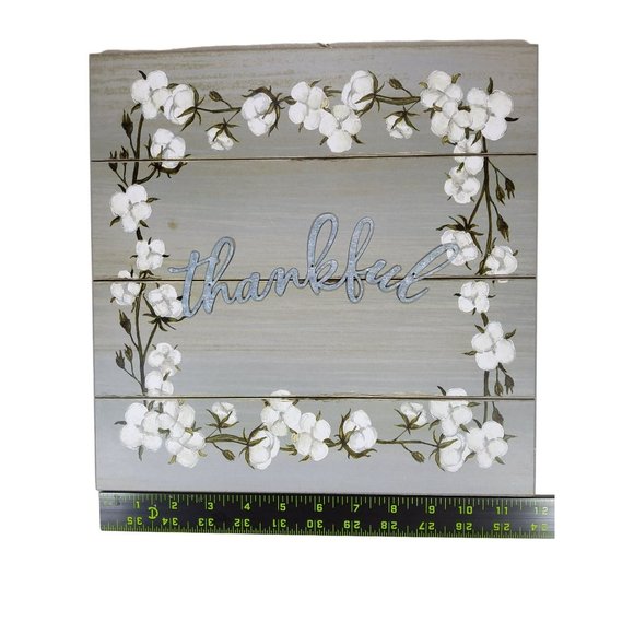 Burton & Burton "Thankful" Wall Hanging Decor Weathered Wood Floral Approx 11"x1