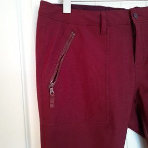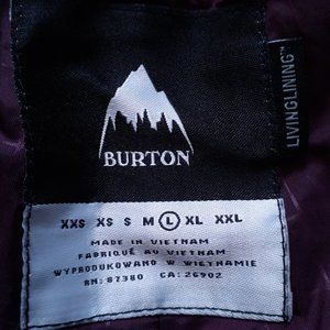 Very good pre-owned condition. Burton Da Nang Living Lining Snow Pants. Size: Large. Poly/nylon. Machine wash. Color: wine. The first two photos are best representation of color. There is a small discoloration below right hand pocket (photo 5) and at front lower leg/hem on both legs (photos 7 and 8.)