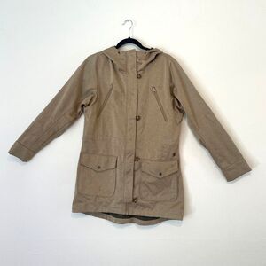 Burton Dryride Hooded Snowboard Jacket LARGE Snow Winter Beige Long Pockets Hood