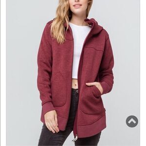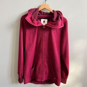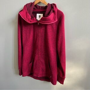 Burton Fleece Hooded Jacket Maroon Red Oversized Hood Full Zip Coat