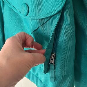 The teal herringbone shell gives it a timeless retro snowboard vibe that’s hard to find today.