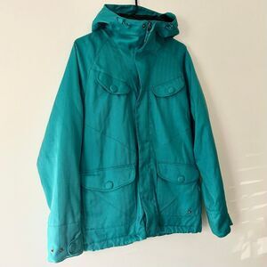 Burton Ginger DRYRIDE Snowboard Jacket Womens L Teal Herringbone Fleece Lined