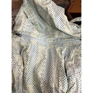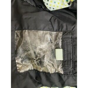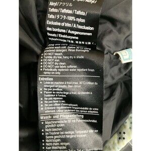 Jacket has a removable hood and zipper and hook and loop closure. Measures 19 inches armpit to armpit and is 24 inches long. Clear inner pocket damaged
