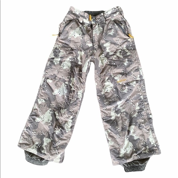 Burton Insulated Gray Camouflage Camo Snowboard Ski Pants Youth XS 5-6 GUC