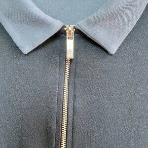 Burton London Blue Stripe Contrast Collar Zip Neck Polo Shirt Men's Size Large