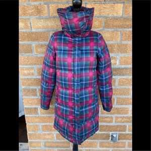 Burton Mecca Trench Down Jacket! Long Plaid Trench 550 Fill Down in excellent condition