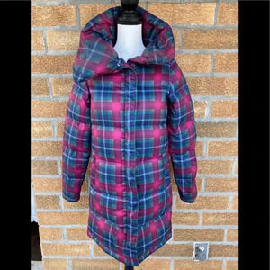 Burton Mecca Trench Down Jacket! Long Plaid Trench 550 Fill Down in excellent condition