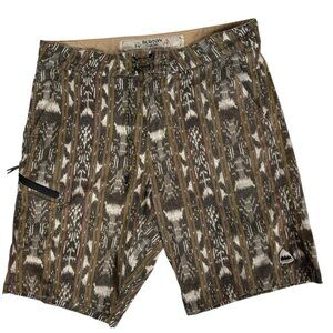 Preowned Burton Moxie Board Shorts Mens 34 Aztec Print Pocket Zipper Beach Pool 9 1/2"