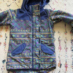 Burton Ski Jacket Girls Medium Blue Geometic Dry Ride