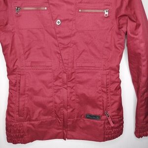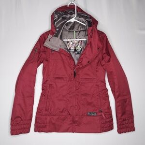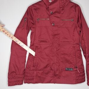 Burton Snowboard Jacket Small DryRide Red Snap Zip Pocket Hooded Water-resistant