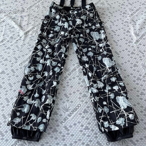 Burton Snowboard Pants/Bibs Women's Size Small Black and White Carnation Print