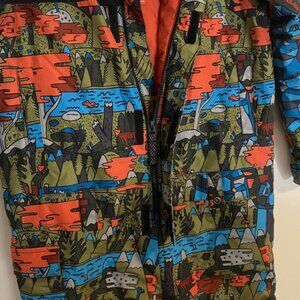 Dynamic snowsuit with vibrant patterns. Ideal for snowy play.