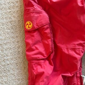 Vibrant red snowboard ronin pants with multiple pockets. Designed for durability and comfort. On excellent condition