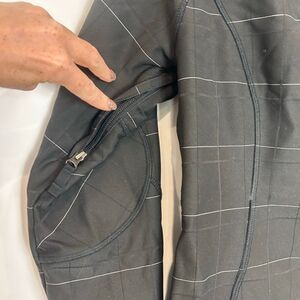 The Burton Dryride Sweatshirt Hoodie features a sleek black-and-white windowpane design and offers reliable comfort with its soft fleece lining. It includes long raglan sleeves for easy movement, an attached hood with an adjustable drawcord, and a full front zipper closure. Functional storage is built in with a sleeve zippered pocket, side zippered pockets, and an interior slip pocket. Adjustable hook-and-loop cuffs.