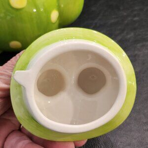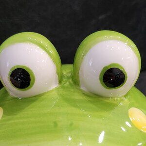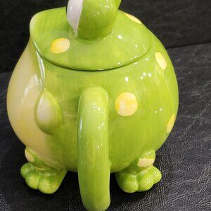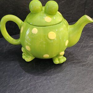 Toby the toad teapot is waiting to seep you a fine 32 oz pot of your favorite tea. Look at that smile, those eyes. How can you resist? Can you give him a home? Ceramic hand wash only. Opening measures 6.5 inches by 2.25 inches. Perfect for functional use or decorative display in the kitchen. New condition. Non-smoking pet free home. @ BR #4