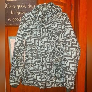 Burton aqua and gray geometric Ski Dry Ride Command Jacket in a women's small.
