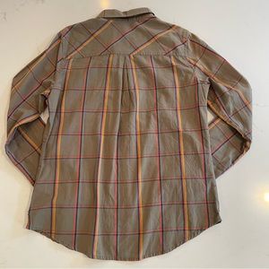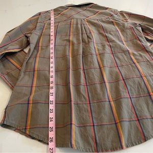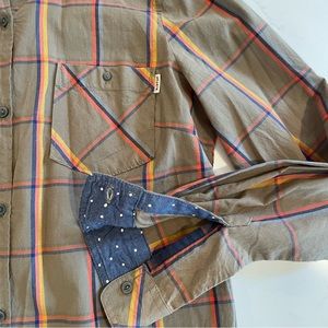 EUC plaid button down shirt (not flannel material) from Burton Dry Goods. Interior contrast color for cute accents on sleeve insides and collar.