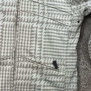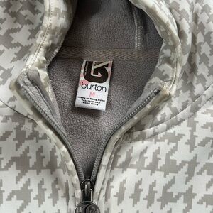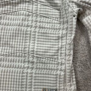 Adorable and warm lightweight jacket by Burton. High quality, white with gray. Slight wear on the bottom but the cuffs of the sleeves look great and no other signs of wear. See pics. Zippers work perfectly.