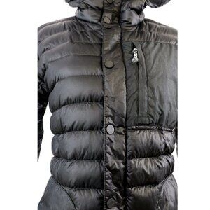 Employee-issued puffer jacket from the Burton U.S. Open Snowboarding Championship in Vail, Colorado. Black quilted puffer with Living Lining™, snap/zip front, zip chest pocket, hood. PACIFICO embroidery on one sleeve, Burton patch on the other.