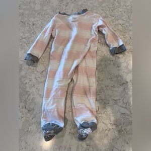 Soft and snug one piece with pink and gray stripes. Ideal for comfort and warmth.