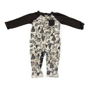 Burt’s Bees Baby Black and Cream Forest Print One Piece Size 12 months