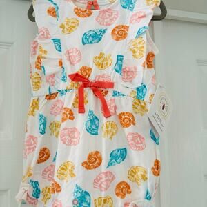 Burts Bees Baby Girl Seashells Bubble Romper, 100% Organic Cotton Baby Girls 12m NWT
