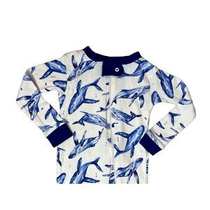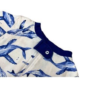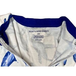 Burt's Bees Baby Organic Cotton Whale Blue White Zippy Footie Sz 18 months. Item in excellent close to new condition. No known rips, tears, holes, stains or defects. First quality item. Measurements in photos.